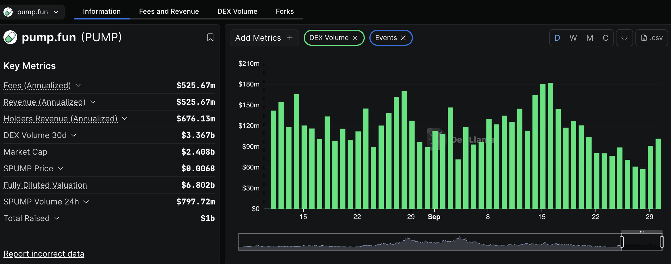 Quan niệm cho rằng tháng 9 thường là tháng giảm giá đối với các hoạt động tiền điện tử bị kìm hãm trên diện rộng] với nền tảng khởi chạy tiền ảo Pump.fun đang chứng kiến doanh thu sụt giảm đáng kể.