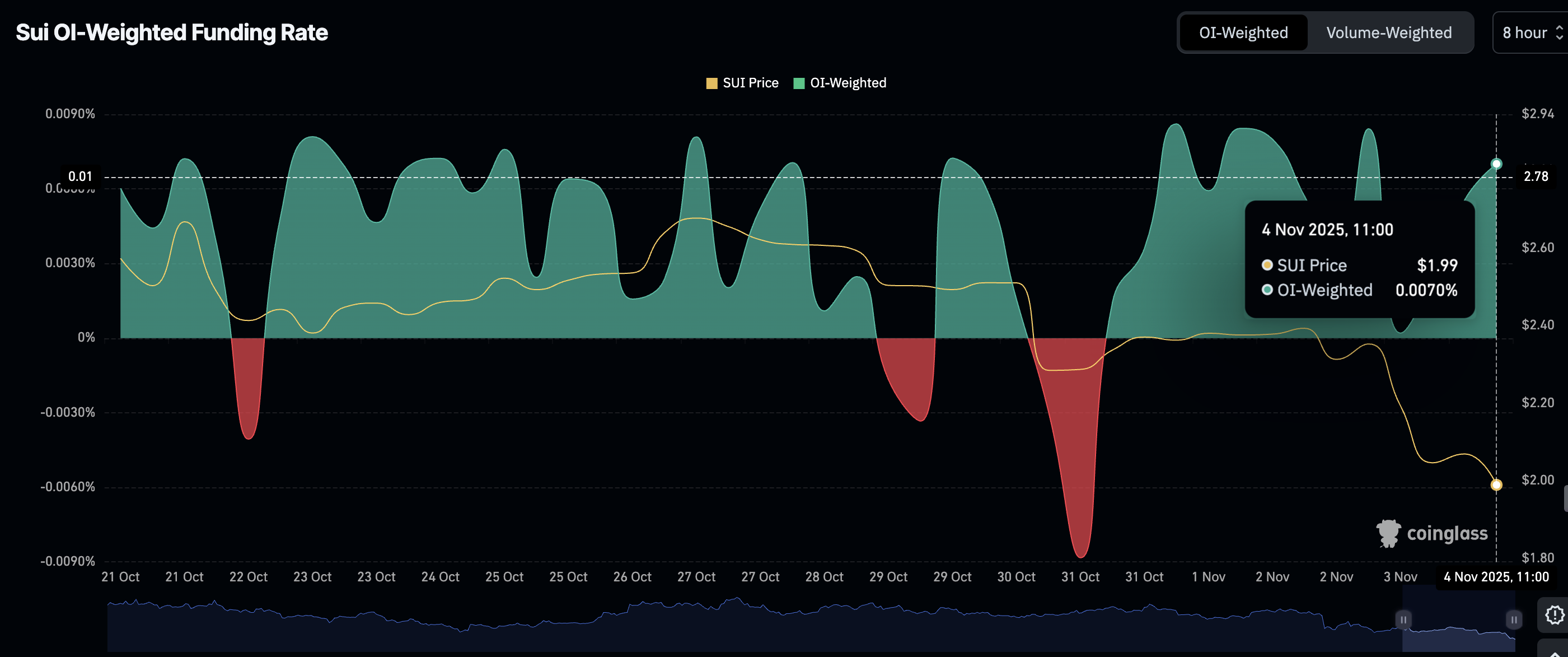 Tỷ lệ tài trợ theo trọng số OI của Sui | Nguồn: CoinGlass