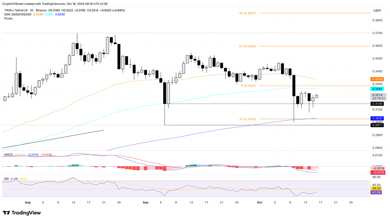 Tron giữ vững trên mức hỗ trợ 0,3145 đô la, được đánh dấu bằng mức đóng cửa ngày 6 tháng 9, tránh được đợt điều chỉnh tiếp theo sau mức giảm 2% vào thứ Bảy. Tại thời điểm viết bài, TRX giao dịch trên 0,3200 đô la vào thứ Năm, đánh dấu ngày phục hồi thứ hai liên tiếp.