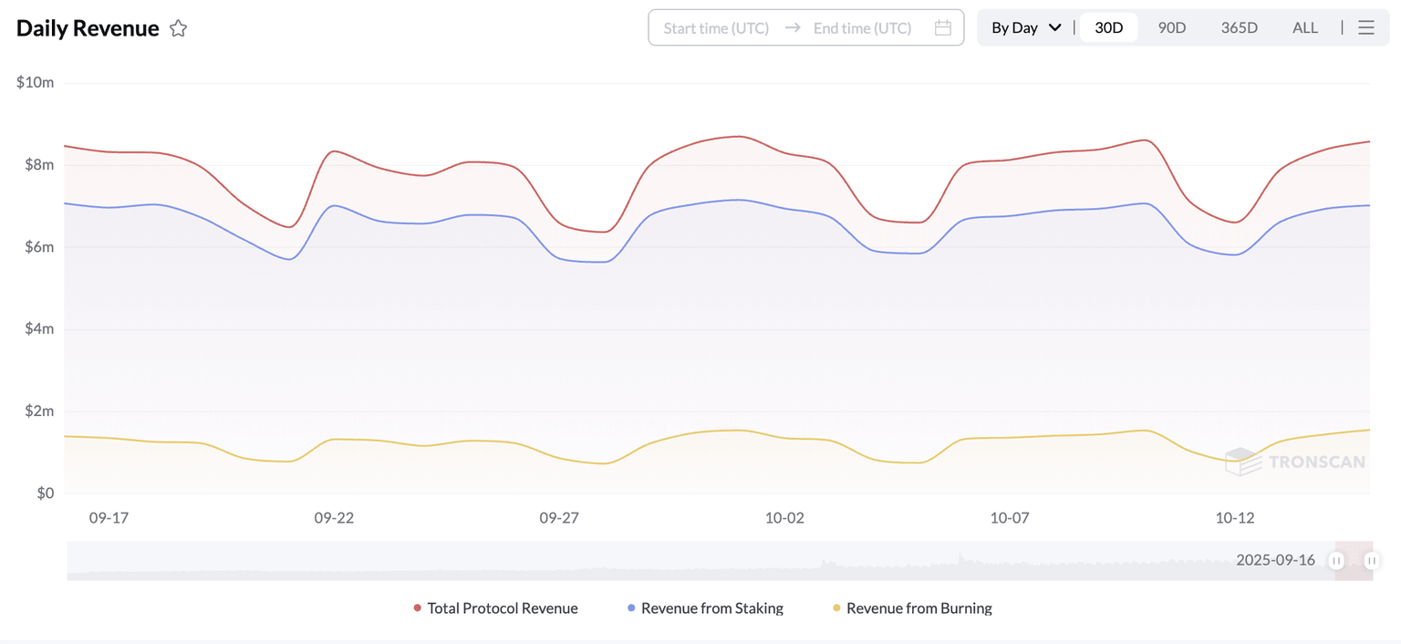 Nhìn chung, dòng doanh thu mạng ổn định và các tài khoản đang hoạt động sẽ dẫn đến sự tăng trưởng của mạng, điều này có thể thúc đẩy giá token gốc, TRX.