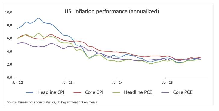 Lạm phát trở thành điểm yếu thứ hai thường xuyên xuất hiện. Áp lực từ dư luận giảm bớt, nhưng tiến trình không đồng đều, đặc biệt là trong lĩnh vực dịch vụ. Mỗi bất ngờ tích cực đều làm dấy lên cuộc tranh luận về mức độ cần thiết của chính sách thắt chặt, và mỗi lần kết quả đều quen thuộc: đồng đô la mạnh hơn và lời nhắc nhở rằng quá trình giảm phát vẫn chưa hoàn tất.
