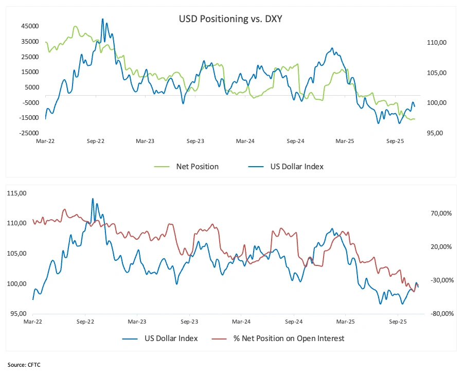 Tình hình định vị thị trường cho thấy một câu chuyện thú vị hơn: Vị thế đầu cơ đã chuyển biến mạnh mẽ, với lượng bán ròng USD hiện đang ở mức cao nhất trong nhiều năm. Nói cách khác, một phần đáng kể thị trường đã định vị cho sự suy yếu hơn nữa của đồng USD. Điều đó không làm mất đi luận điểm giảm giá, nhưng nó làm thay đổi hồ sơ rủi ro. Với vị thế ngày càng nghiêng về một phía, rào cản đối với sự giảm giá bền vững của USD tăng lên, trong khi rủi ro về các đợt tăng giá do mua bù bán khống cũng tăng lên.