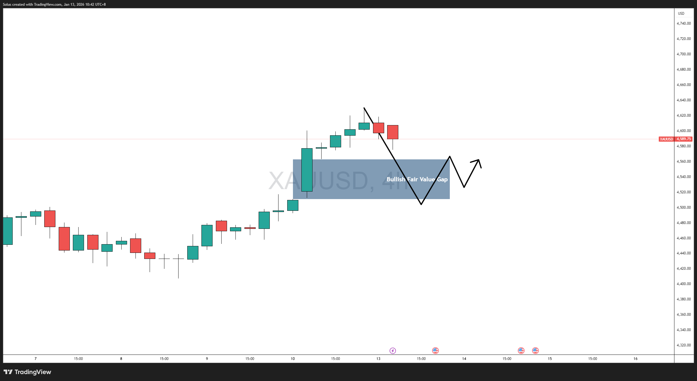 - Giá vàng duy trì trên mức FVG 4H hoặc phản ứng nhẹ.