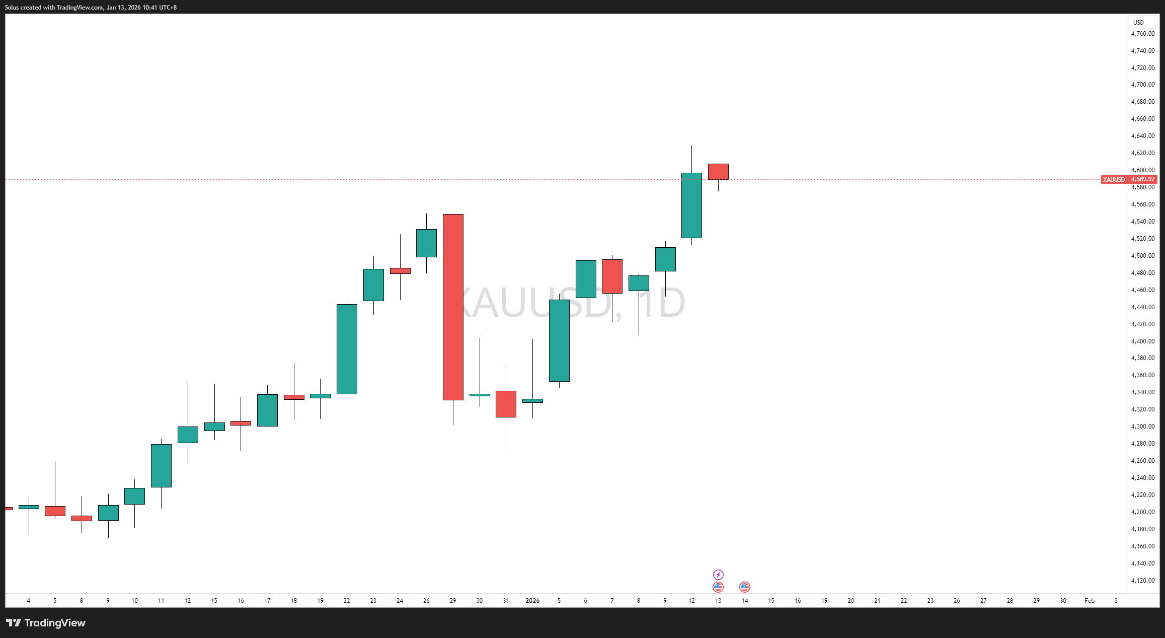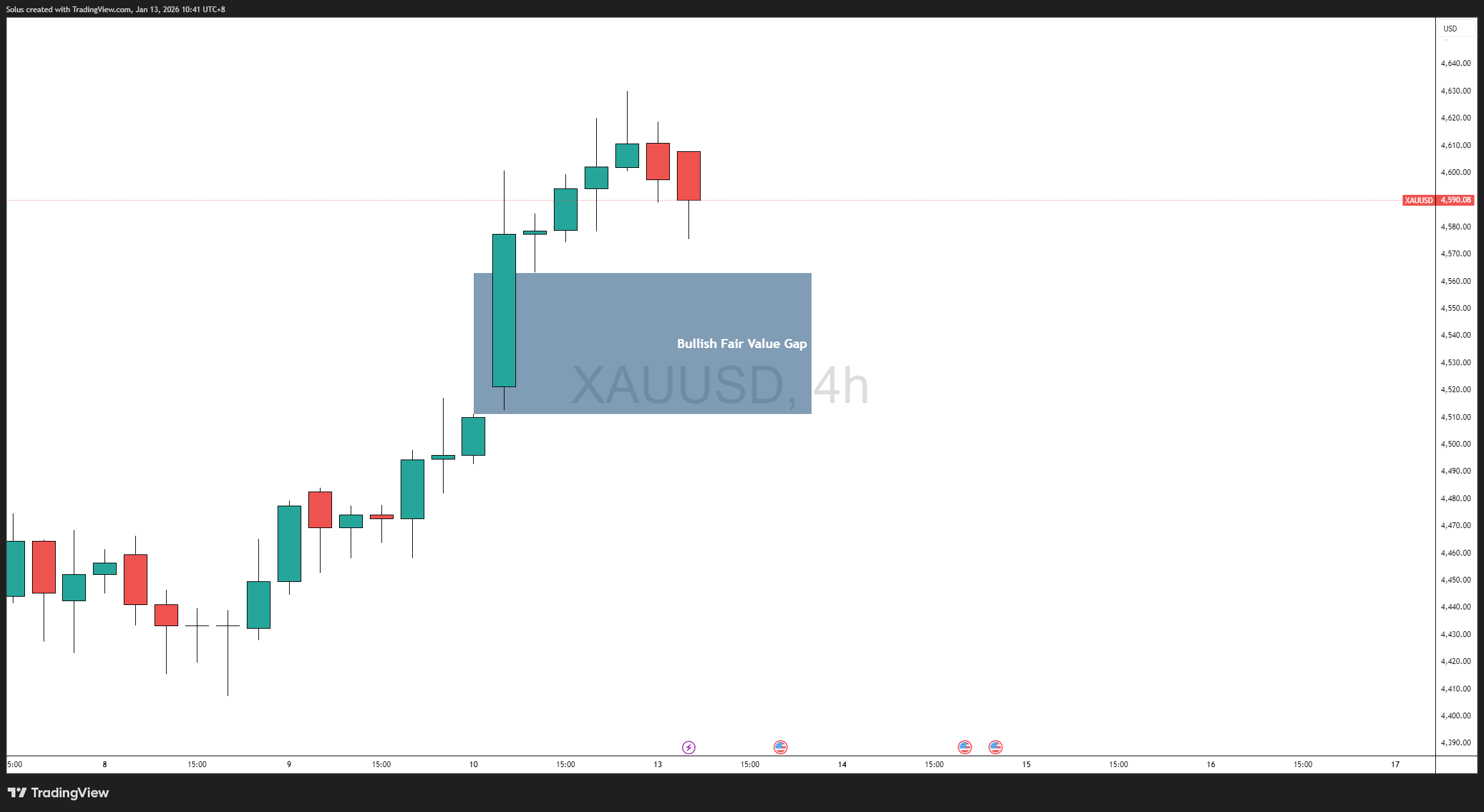 Giá vàng vẫn duy trì xu hướng tăng về mặt cấu trúc, khi giá đang ổn định trên mức khoảng trống giá trị hợp lý (Fair Value Gap) quan trọng trong khung thời gian 4 giờ sau một đợt mở rộng mạnh mẽ.
