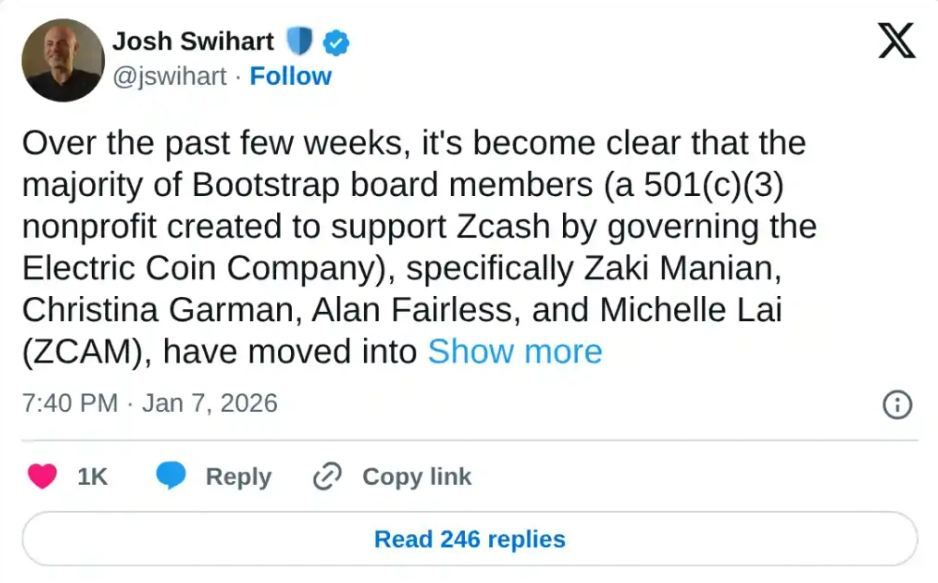 Swihart nhấn mạnh rằng giao thức Zcash vẫn không bị ảnh hưởng và quyết định này được đưa ra để bảo vệ những nỗ lực của nhóm khỏi những gì ông gọi là "các hành động quản trị ác ý".