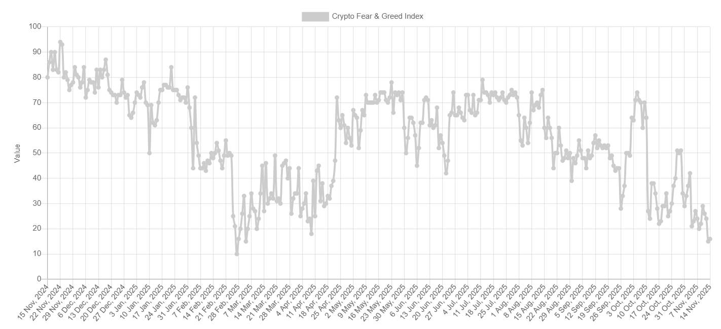 Chỉ số Sợ hãi và Tham lam giảm xuống mức 16 vào thứ Sáu, gần mức thấp nhất vào đầu tháng 3, cho thấy sự chuyển dịch mạnh sang nỗi sợ hãi cực độ khi những người tham gia thị trường chuẩn bị cho sự sụt giảm tiếp theo.