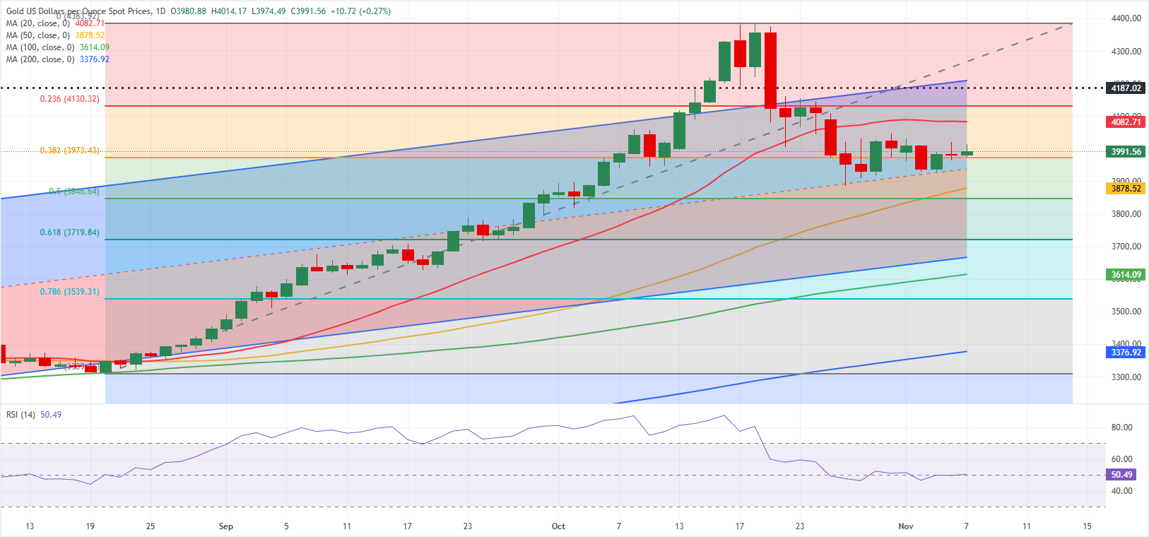 Vàng (XAU/USD) đã chật vật để có một bước chuyển biến rõ ràng theo cả hai hướng và dao động trong một kênh tương đối hẹp quanh mức 4.000 đô la trong suốt cả tuần.