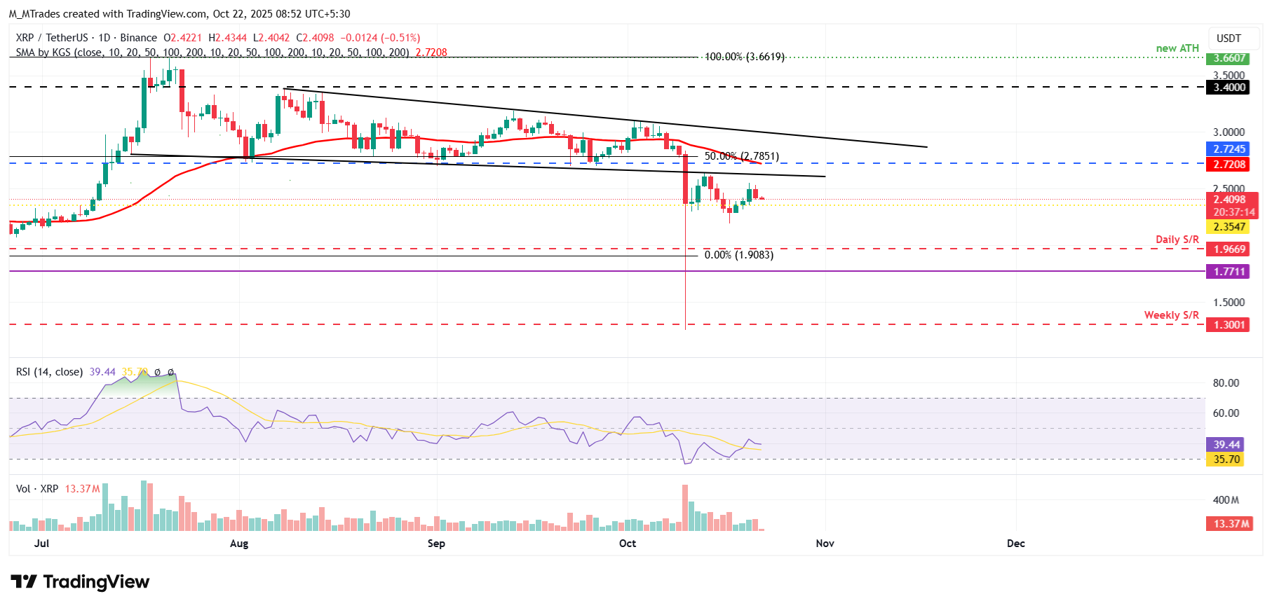 - XRP tiến gần đến mức hỗ trợ quan trọng là 2,35 đô la, mức đóng cửa chắc chắn bên dưới cho thấy xu hướng giảm tiếp theo.