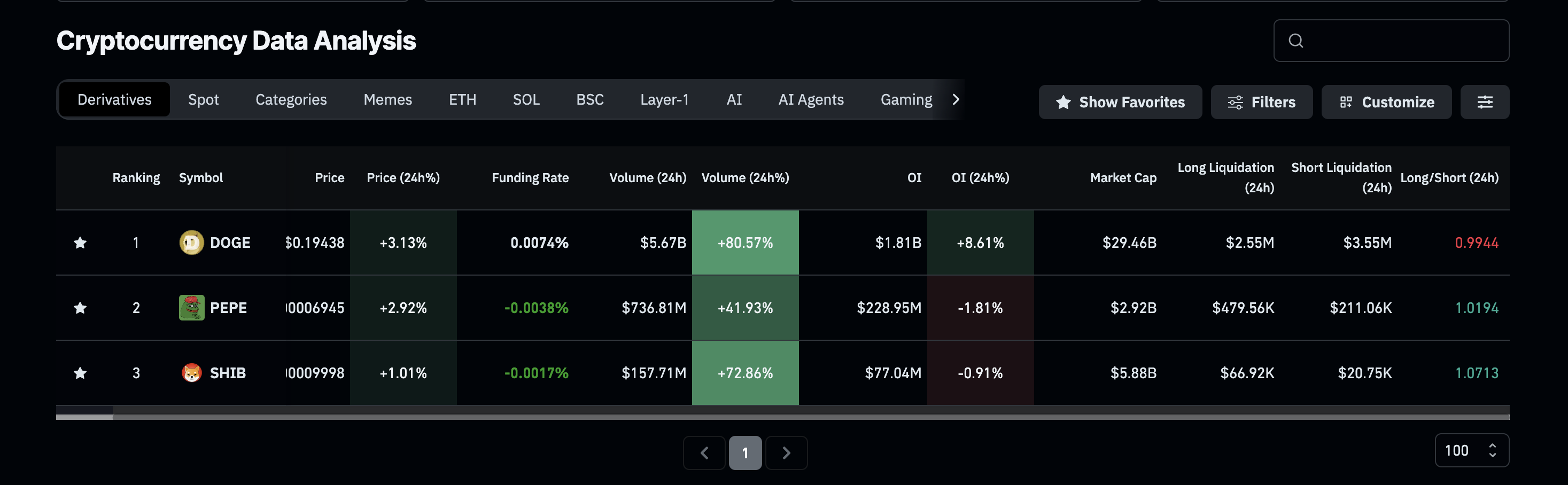 Dữ liệu phái sinh của đồng tiền meme. Nguồn: CoinGlass