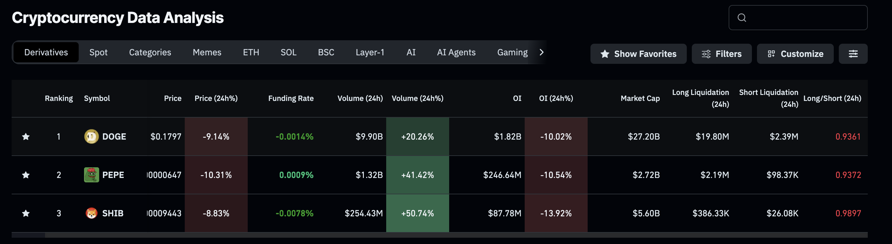 Dữ liệu phái sinh của đồng tiền meme. Nguồn: CoinGlass