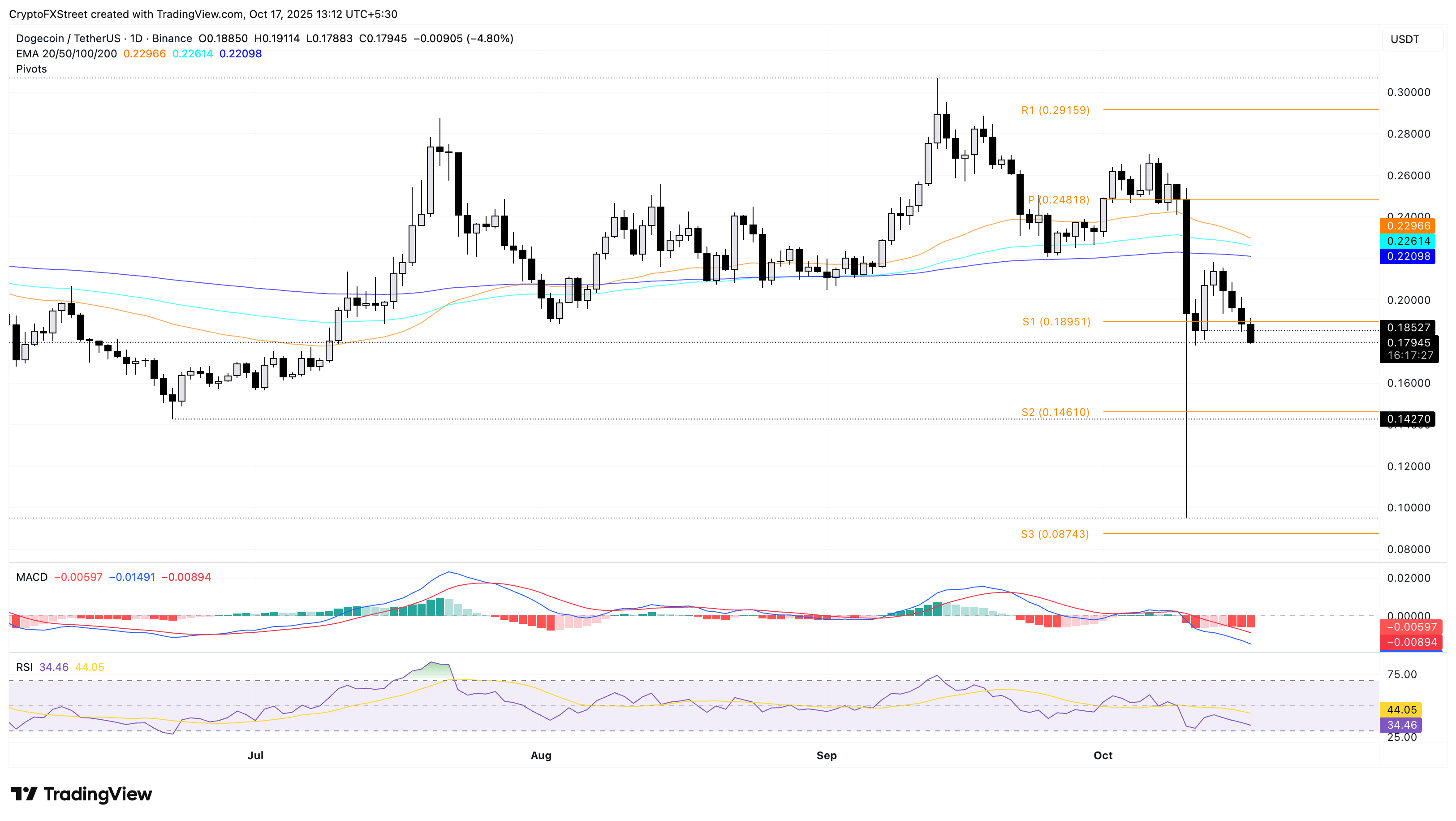 Nhìn lên, nếu DOGE phục hồi mức lỗ trong ngày để giữ trên mức 0,18000 đô la, giá có thể kiểm tra lại mức Pivot Point S1 ở mức 0,18951 đô la.