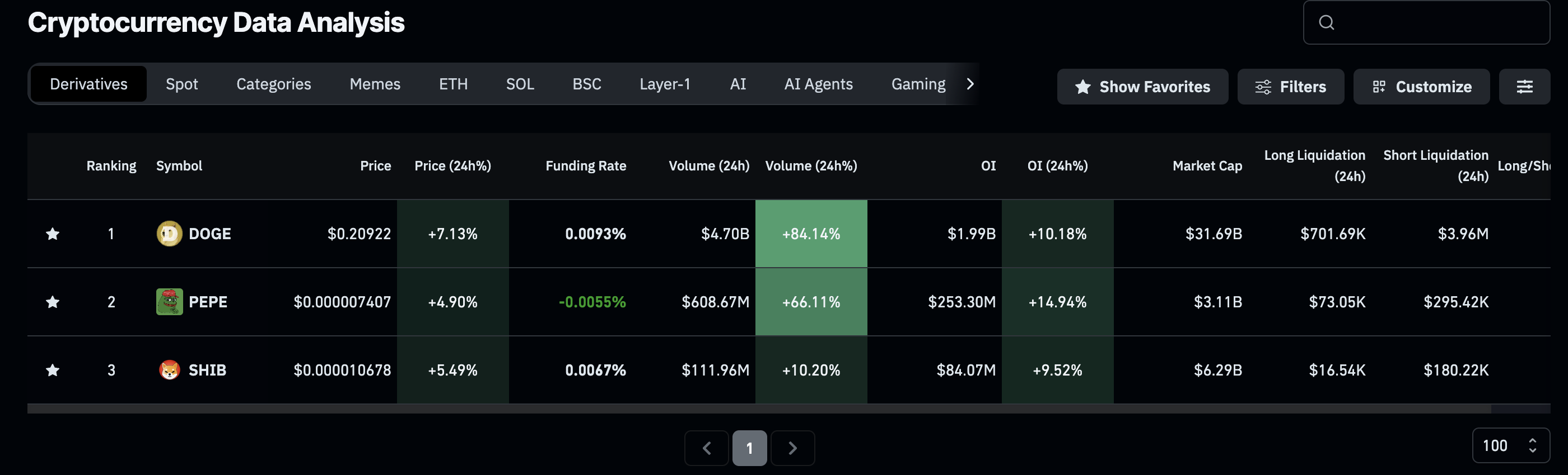 Dữ liệu phái sinh của đồng tiền meme. Nguồn: CoinGlass