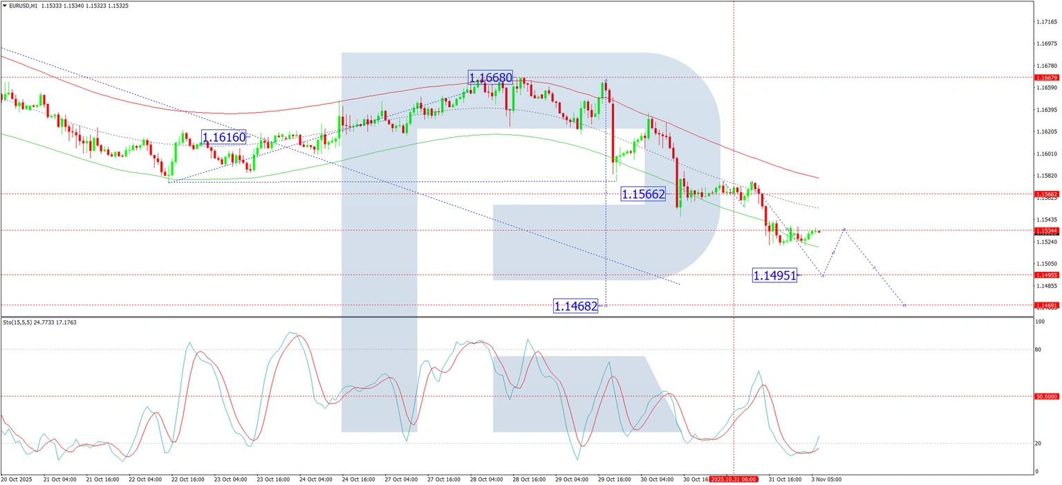 Trên biểu đồ H1, cặp tiền tệ đã phá vỡ xu hướng giảm từ vùng tích lũy quanh 1,1566, đạt mục tiêu ban đầu là 1,1495. Khi đạt đến mức này, nhiều khả năng sẽ có một đợt điều chỉnh phục hồi về 1,1533 trước khi xu hướng giảm tiếp tục về 1,1468.