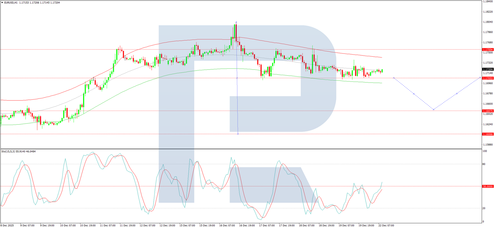 Trên biểu đồ H1, thị trường đã hoàn thành một đợt giảm giá khác xuống mức 1.1702, tiếp theo là điều chỉnh xuống 1.1737. Một xung lực giảm giá mới hướng tới mức 1.1650 hiện đang hình thành. Nếu giá phá vỡ bền vững dưới mức này, điều đó sẽ báo hiệu khả năng hình thành một đợt giảm giá thứ ba kéo dài, nhắm mục tiêu vào vùng 1.1645 như một mục tiêu cục bộ.