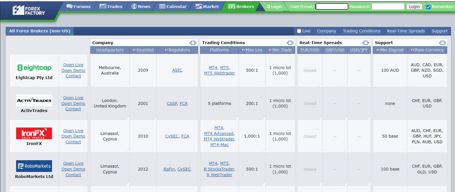Hướng dẫn sử dụng ForexFactory Brokers