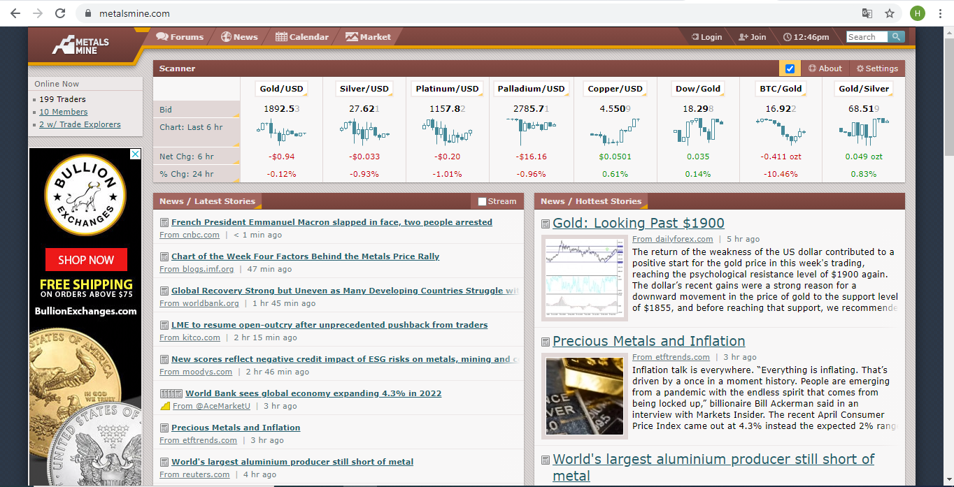 Đây là phần giao diện cho phép các nhà đầu tư truy cập thông tin chuyên về kim loại như: Vàng (forex factory gold), bạc (silver), Palladium,…