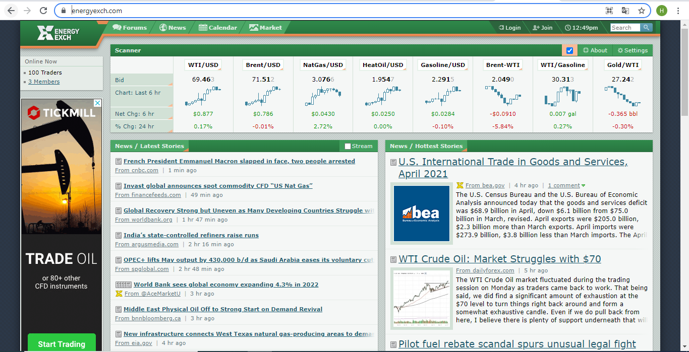 Phần giao diện Energy EXCH cho phép các trader truy cập thông tin về các mặt hàng năng lượng như: dầu, Witi, Brent, Gas,…