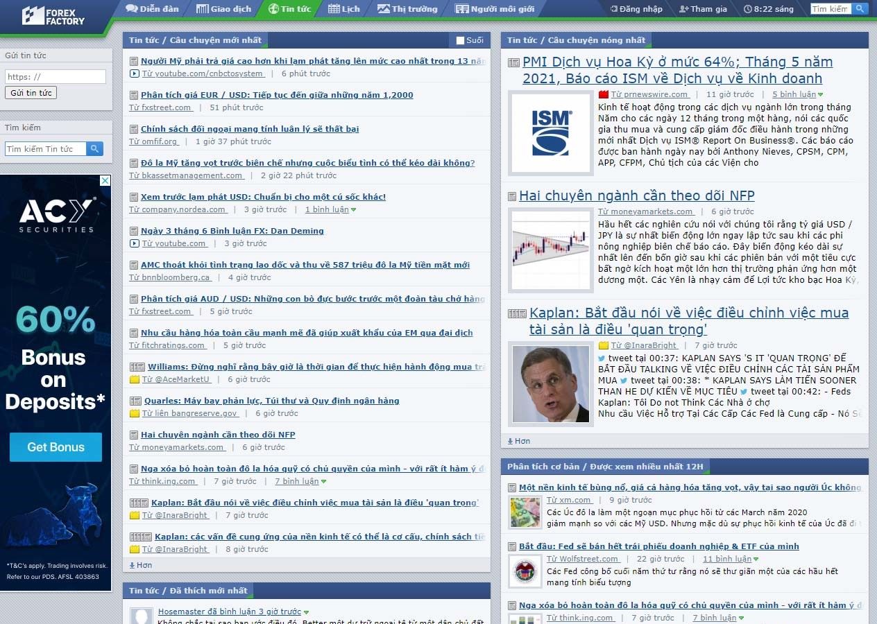 Forexfactory News – Khu vực tin tức