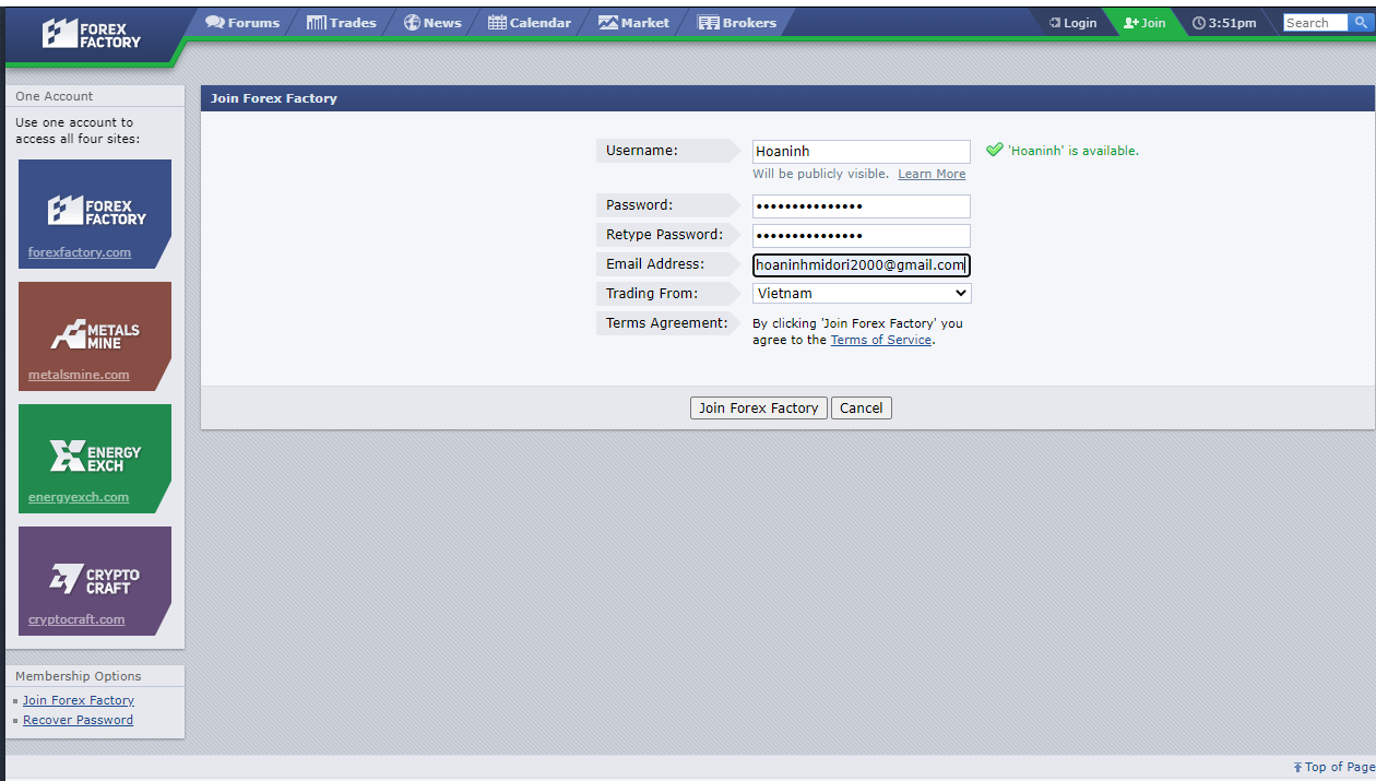 Cách đăng ký thành viên trên ForexFactory