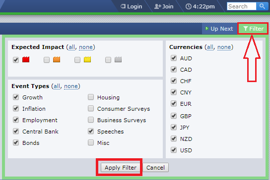 Hướng dẫn cách cài đặt bộ lọc tin tức trên mục Calendar của Forex Factory