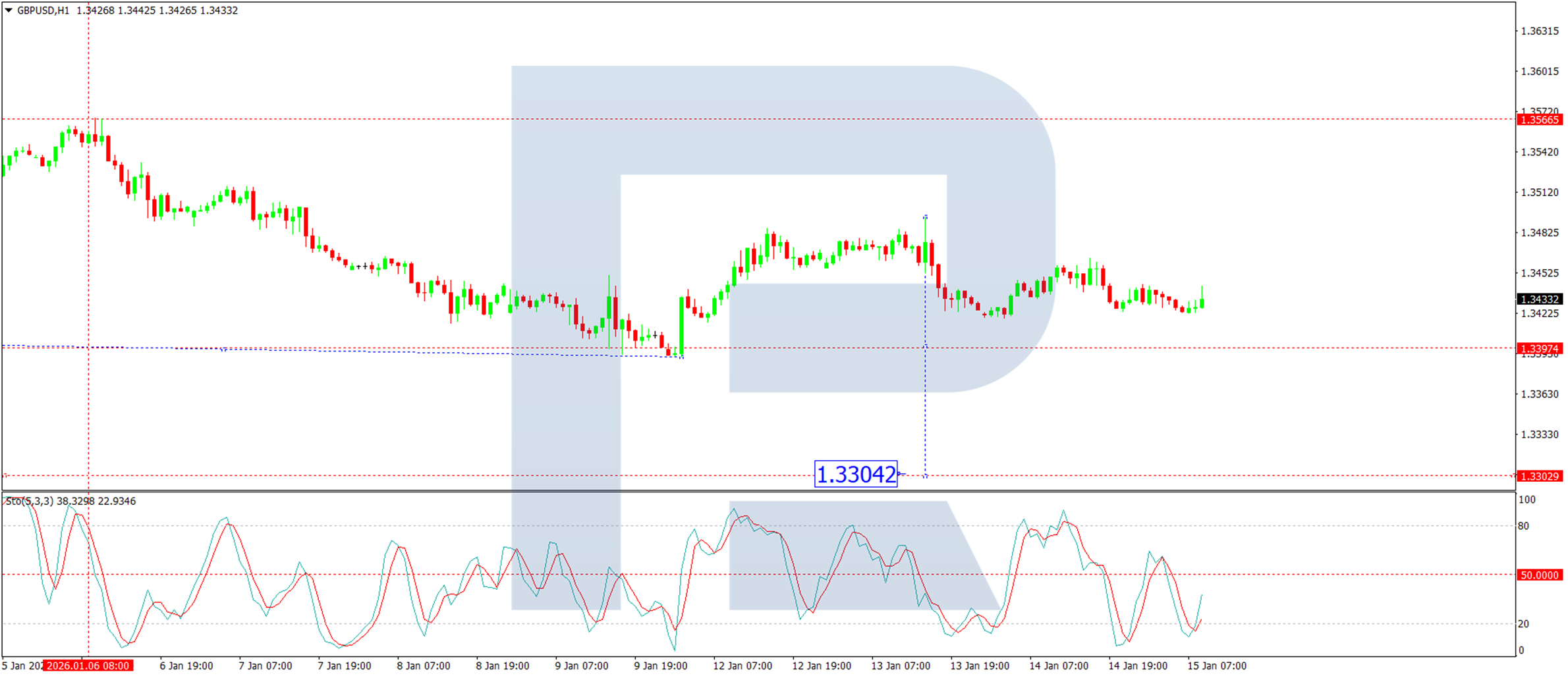 Trên biểu đồ H1, cặp tiền này đã thiết lập một vùng tích lũy hẹp quanh mức 1.3440 USD. Đang có xu hướng giảm xuống mức 1.3395 USD, và nếu phá vỡ mức này, khả năng giảm tiếp xuống 1.3290 USD sẽ tăng mạnh hơn nữa. Chỉ báo Stochastic cũng đồng quan điểm với nhận định này, khi đường tín hiệu của nó nằm dưới mức 20 và đang có xu hướng giảm, cho thấy đà bán tiếp tục duy trì.
