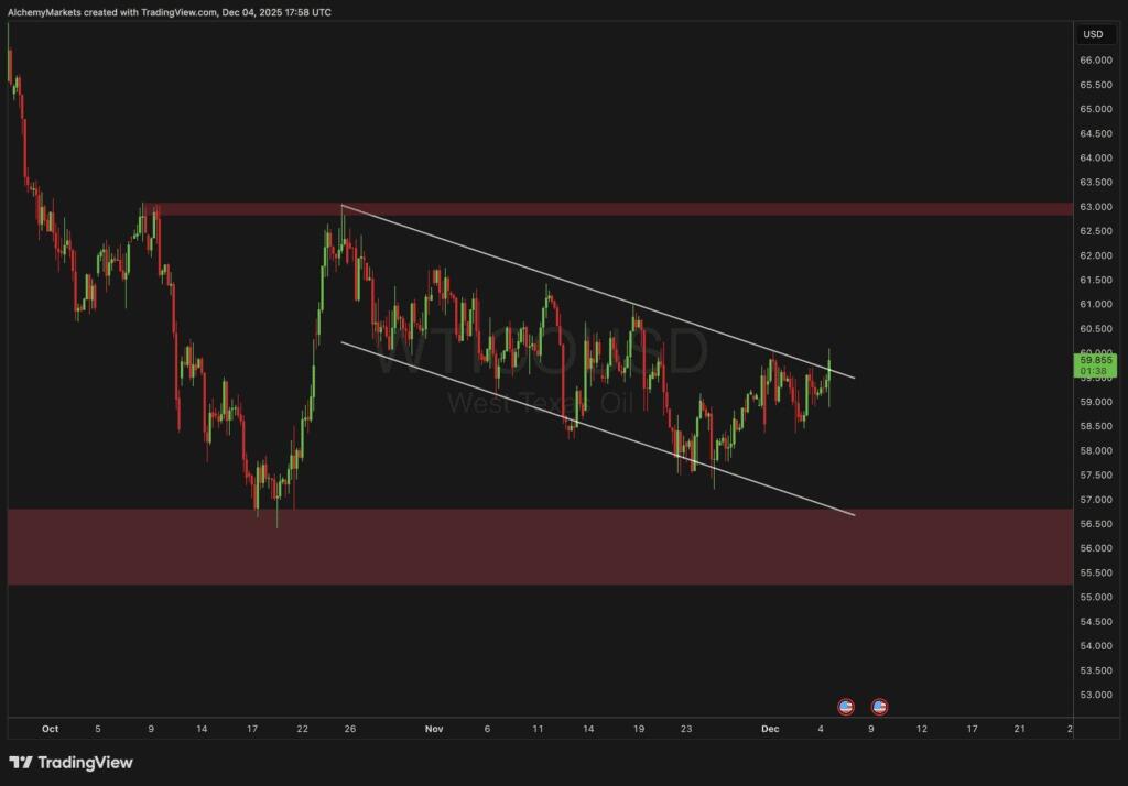 Sau nhiều tuần giao dịch trong kênh giảm giá hẹp, giá dầu thô Mỹ (WTI) cuối cùng đã bứt phá - cho thấy đà giảm có thể đang yếu dần. Giá hiện đang dao động quanh mức 60 đô la một thùng , và các nhà giao dịch đang theo dõi sát sao xem liệu đà giảm này có thể duy trì hay không.