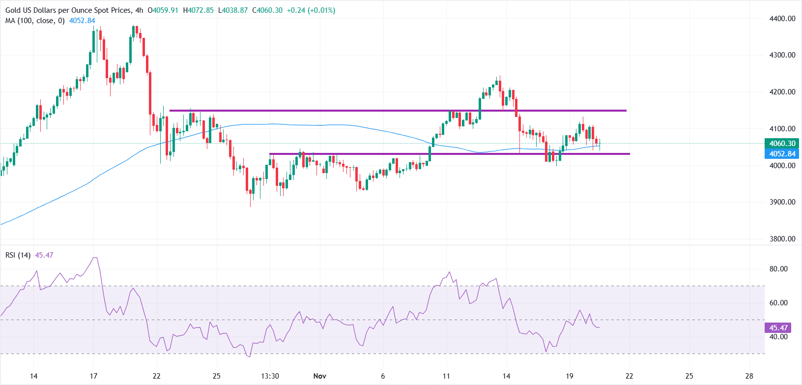 Phân tích kỹ thuật: XAU/USD bám sát mức hỗ trợ 4.050 đô la khi đường SMA 100 kiểm soát được phe bán