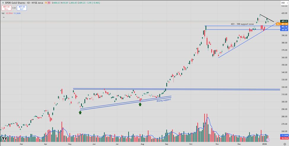 - Chỉ số GLD đã thiết lập kỷ lục cao nhất mọi thời đại mới ở mức 418,45 vào thứ Sáu, ngày 26 tháng 12, tạo ra một khoảng trống tăng giá đáng kể.
