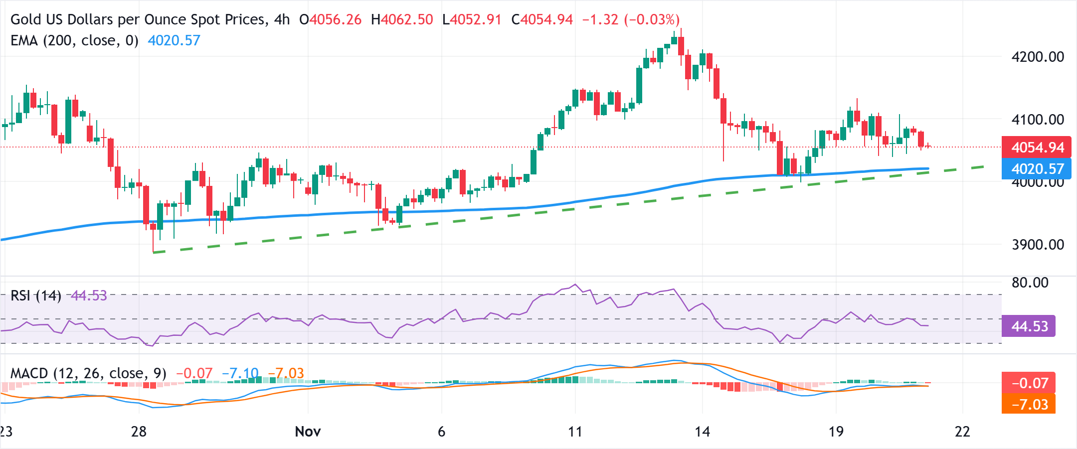 Vàng tiến gần ngưỡng hỗ trợ 4.020 đô la trong bối cảnh kỹ thuật hỗn hợp