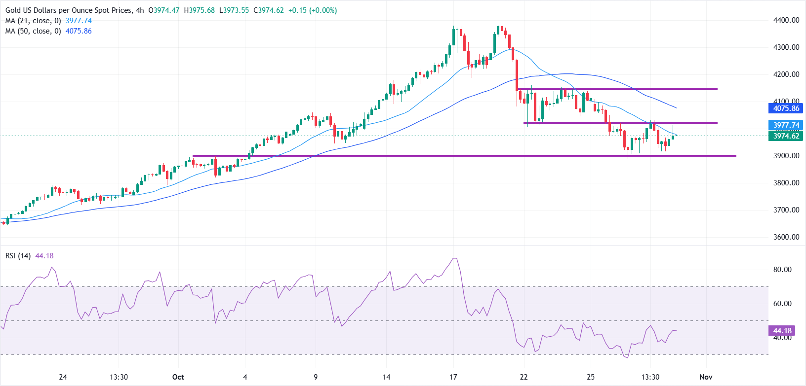 Phân tích kỹ thuật: XAU/USD củng cố dưới mức 4.000 đô la với đà tăng khiêm tốn