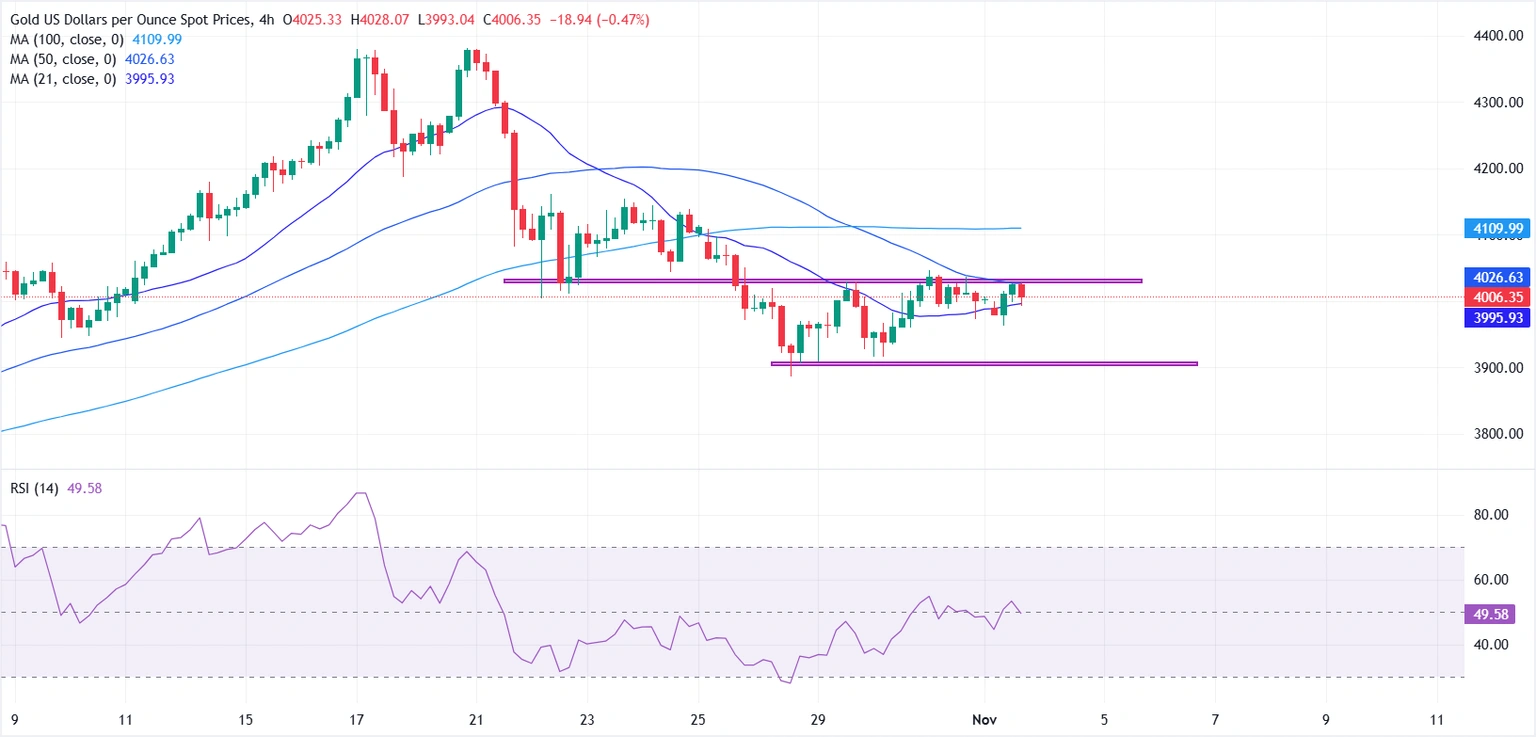 Phân tích kỹ thuật: XAU/USD giữ vững ở mức gần 4.000 đô la trong bối cảnh đà tăng trung tính