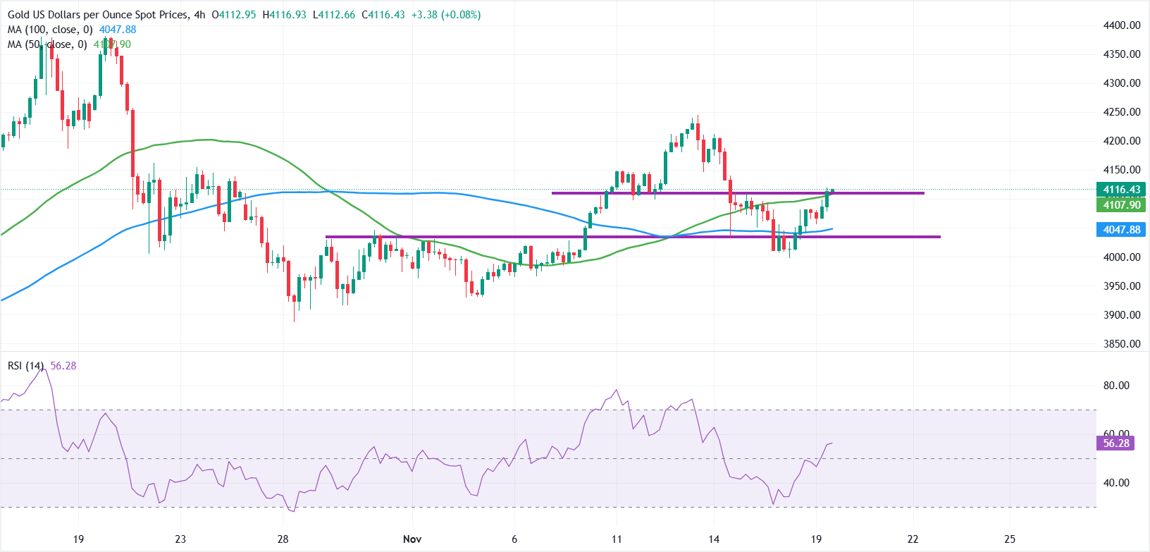 Về mặt tiêu cực, đường SMA 100 kỳ cung cấp hỗ trợ ngay lập tức, trước ngưỡng tâm lý 4.000 đô la. Động lực cũng đã được cải thiện, với Chỉ số Sức mạnh Tương đối (RSI) tăng trở lại trên ngưỡng 50 sau khi gần đây dao động gần vùng quá bán, báo hiệu áp lực mua đang phục hồi.