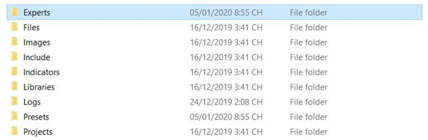 Sau khi mở thư mục Expert, anh em paste file EA đã copy ban đầu vào đây, file EA sẽ có đuôi .ex4 nhé anh em. Đến đây chúng ta đã hoàn thành bước 1.