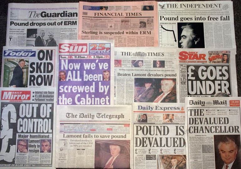 Thương vụ của George Soros lên trang nhất hầu hết tất các mặt báo lúc bấy giờ.