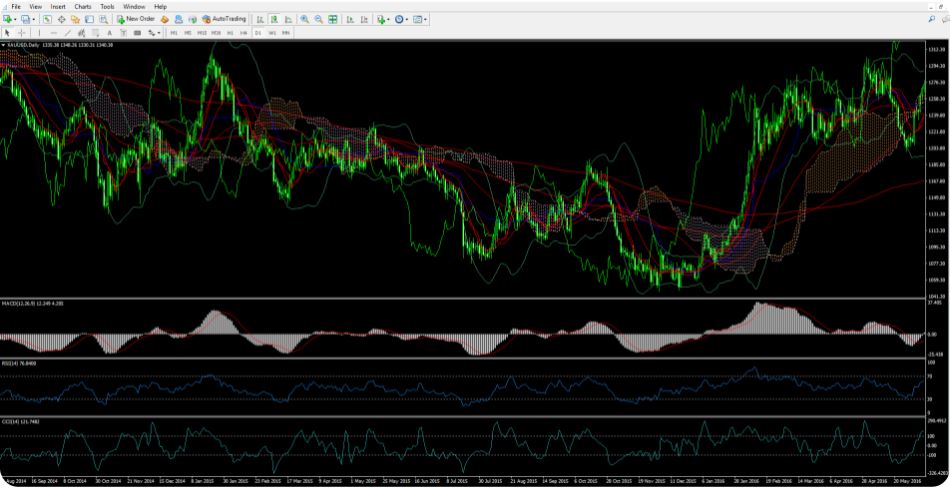 Mình đã từng thấy một số trader sử dụng chằng chịt các indicator, trendline, ichimoku,… được thể hiện trên cùng một biểu đồ nến. Ví dụ như thế này: