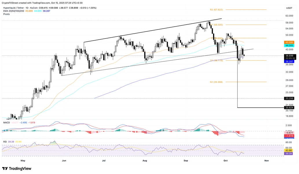 - Hyperliquid kéo dài mức lỗ 7% từ thứ Ba, có nguy cơ phá vỡ đường EMA 200 ngày.