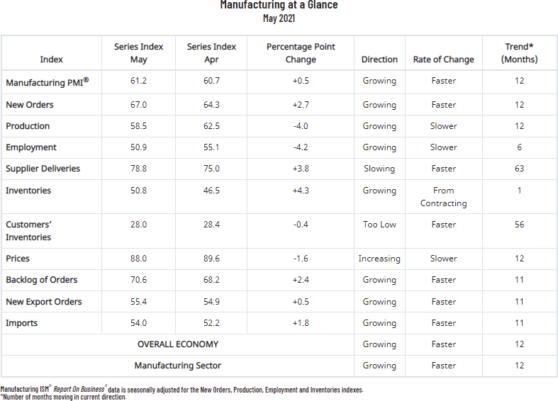Chỉ số ISM Manufacturing PMI của Hoa Kỳ được công bố đầu tháng 6 với con số 61.2% (Nguồn: Internet)