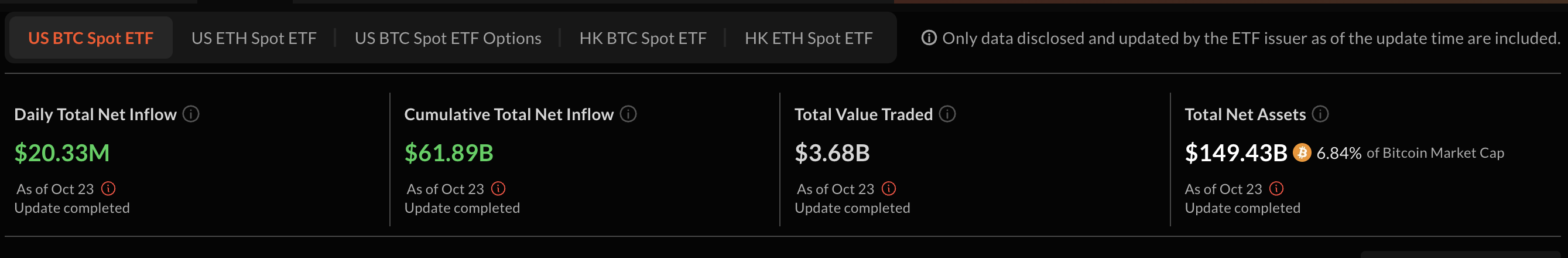 Kể từ khi Bitcoin ETF được chấp thuận vào tháng 1 năm 2024, Phố Wall đã bắt đầu quan tâm đến ngành công nghiệp tiền điện tử khi các tổ chức tìm kiếm các phương tiện đầu tư thay thế. Theo SoSoValue, trong vòng chưa đầy hai năm, các quỹ ETF giao ngay Bitcoin đã tích lũy được gần 62 tỷ đô la dòng tiền ròng và 149 tỷ đô la tài sản ròng.
