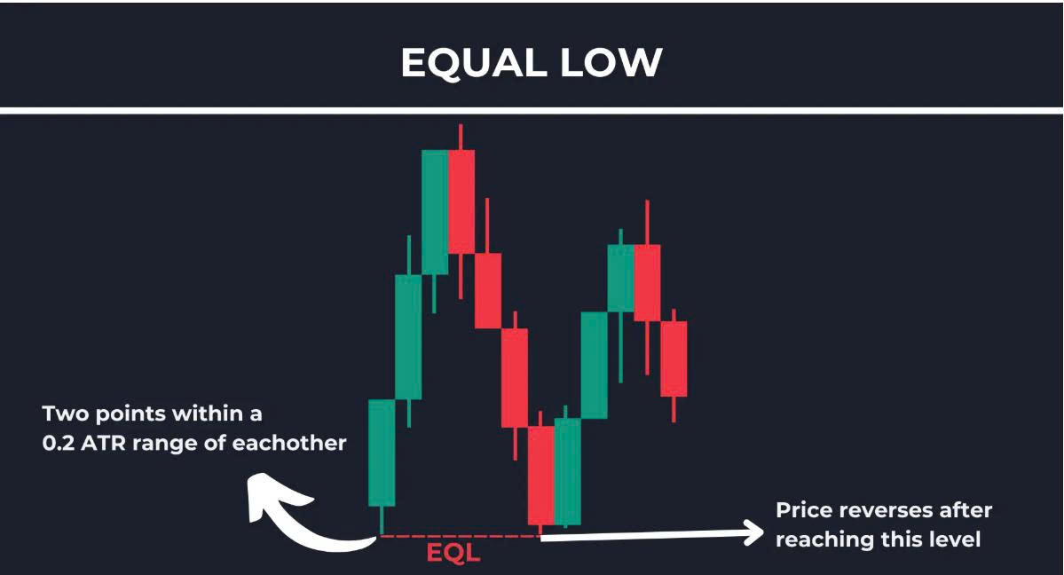 Mức đáy bằng nhau (EQL) là một khái niệm giao dịch được các nhà giao dịch theo hành động giá (còn được gọi là nhà giao dịch SMC hoặc ICT) sử dụng. EQL là một chỉ báo tăng giá được sử dụng để xác nhận sự đảo chiều xu hướng hoặc vùng tích lũy trên thị trường.