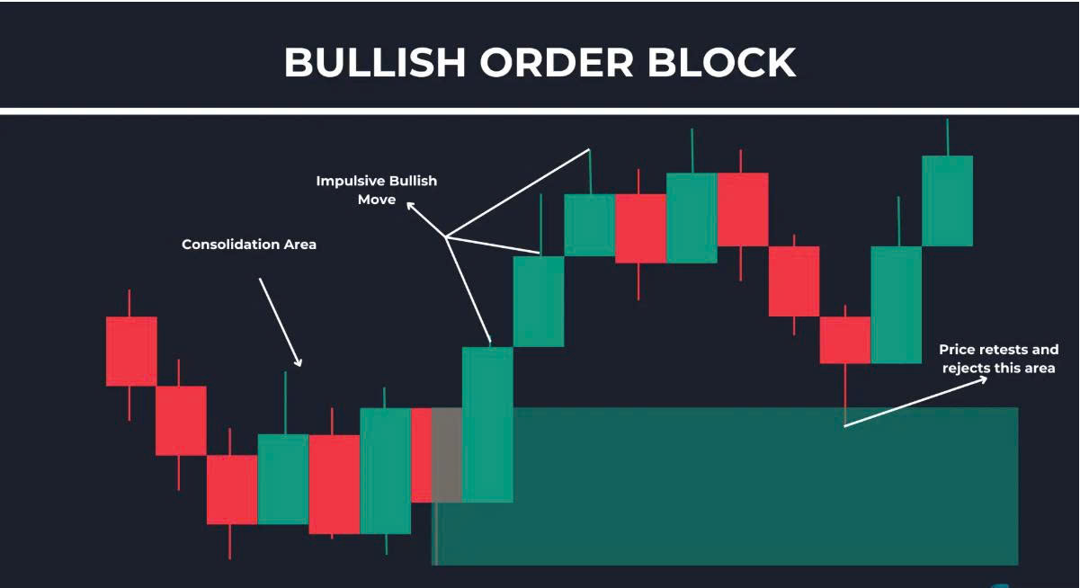 Khối lệnh là những khu vực có lượng lệnh giới hạn chưa khớp, gây ra phản ứng lớn trên thị trường khi giá chạm đến những khu vực này. Khối lệnh tăng giá cho thấy có nhiều lệnh giới hạn mua, trong khi khối lệnh giảm giá cho thấy có nhiều lệnh giới hạn bán.