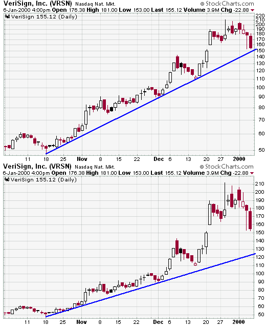 Đường xu hướng cung cấp cho chúng ta ý tưởng về tốc độ thay đổi của một xu hướng.
