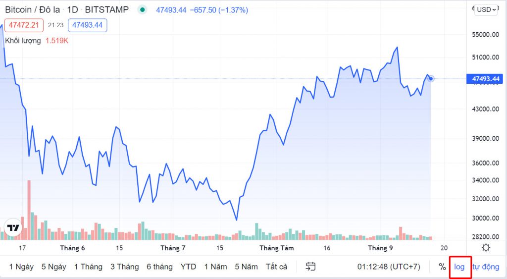 Tradingview luôn sẵn có biểu đồ Logarit để sử dụng.