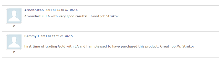 Tôi cũng đăng ký vào nhóm Telegram của ông Strukov và chờ đợi ngày giao dịch đầu tiên của năm. Đã hơn 3 tuần trôi qua và tôi phải thốt lên rằng EA này thực sự ấn tượng. Tài khoản của tôi đã tăng từ 170 lên 450 Euro trong 3 tuần. Ông Strukov cũng rất nhiệt tình hỗ trợ mọi thắc mắc trong nhóm hàng ngày. Dù ko phải “chén thánh” nhưng EA Gold Stuff rất đáng để bạn trải nghiệm.”