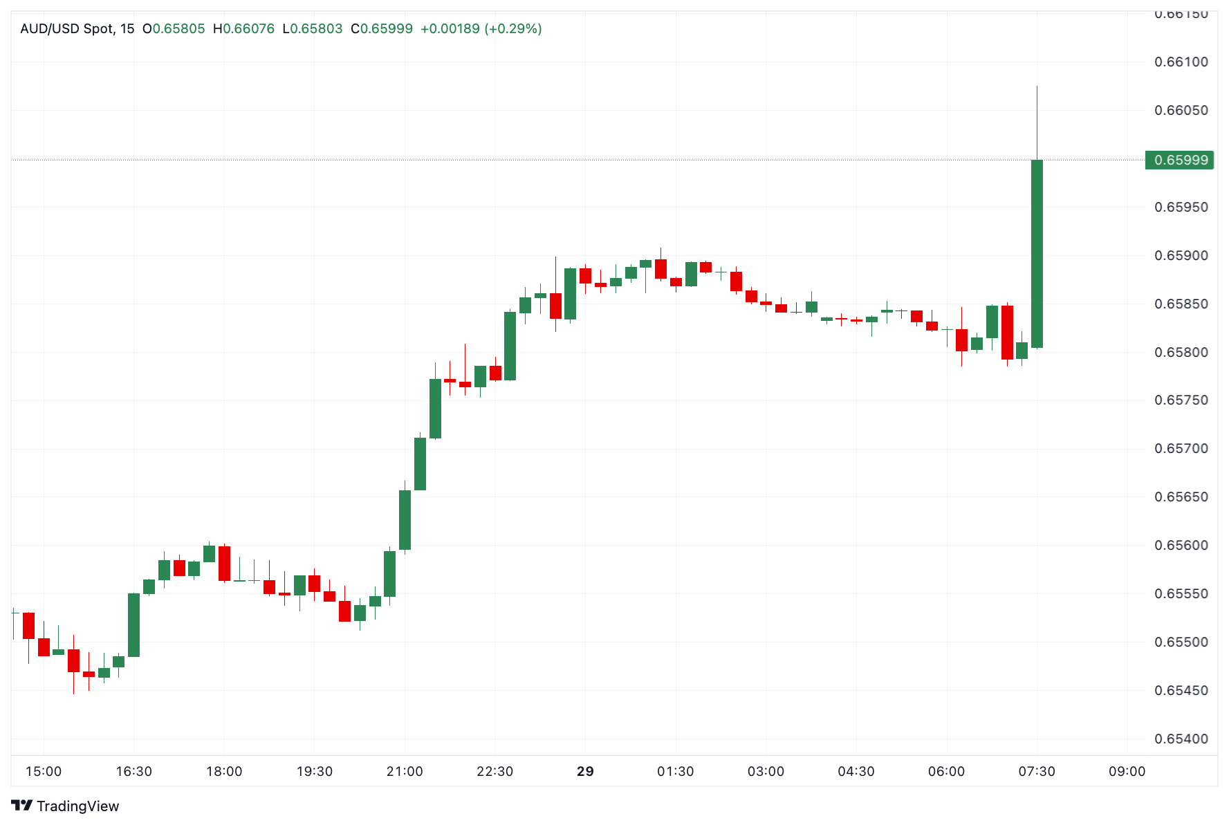 Trước khi CPI được công bố, Đô la Úc (AUD) giao dịch quanh mức 0,6550 so với đồng đô la Mỹ, trong bối cảnh thị trường tài chính đang chật vật tìm hướng đi trong bối cảnh chính phủ Hoa Kỳ (US) đóng cửa và các quyết định về chính sách tiền tệ của các ngân hàng trung ương.