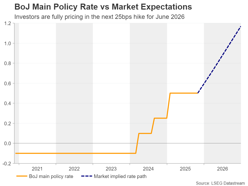 Xét đến tất cả những điều này, các nhà đầu tư đã hoãn lại các dự đoán tăng lãi suất của BoJ, và từ chỗ đặt cược mạnh vào khả năng tăng lãi suất 25 điểm cơ bản vào tháng 12, giờ đây họ chỉ còn đặt cược 25%. Mức tăng 0,25 điểm cơ bản đã được định giá đầy đủ vào tháng 6, sau khi kết thúc đàm phán lương mùa xuân.