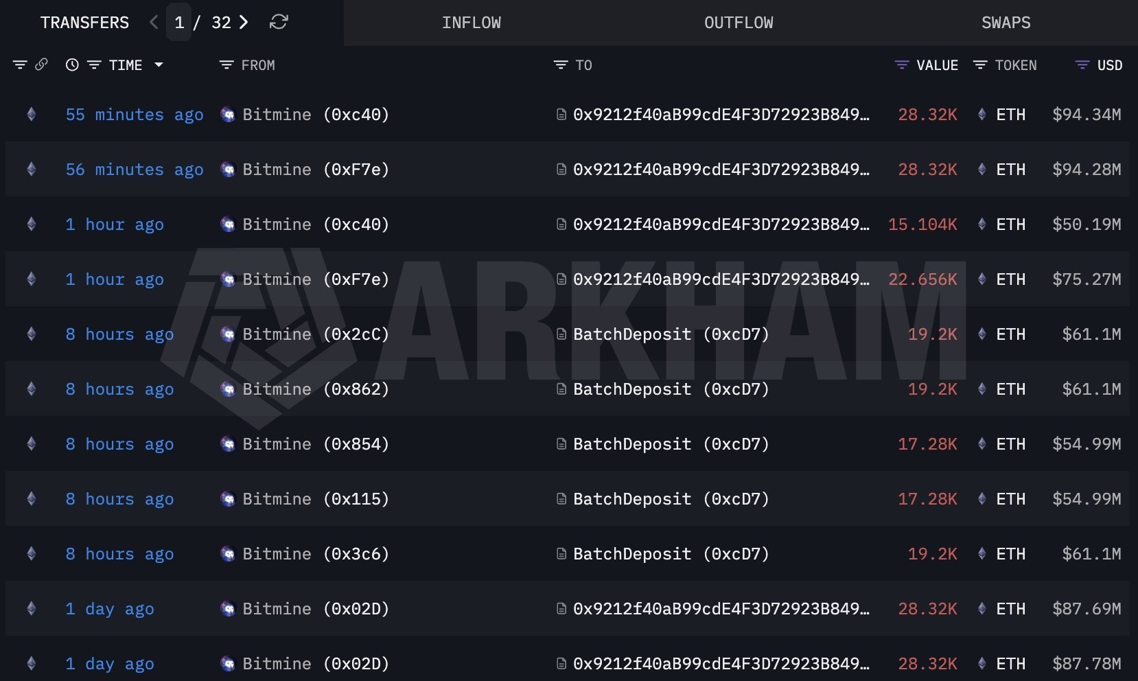 Theo báo cáo của Lookonchain hôm thứ Tư, BitMine Immersion Technologies (BMNR) do Tom Lee làm chủ tịch đã bổ sung 186.560 ETH (trị giá khoảng 625 triệu đô la) vào địa chỉ “Beacon Depositor”.