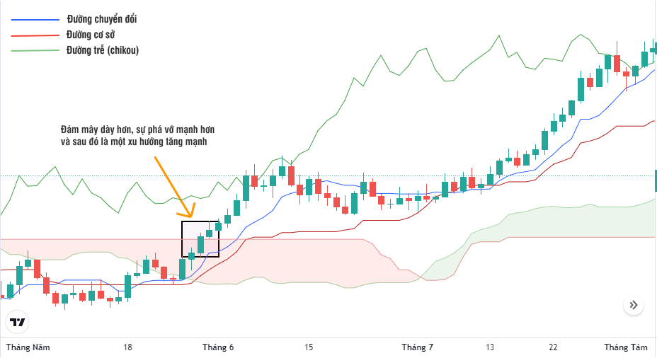 - Nếu giá ở một phía của đám mây càng lâu, thì khi phá vỡ theo hướng ngược lại càng có khả năng thành công cao.