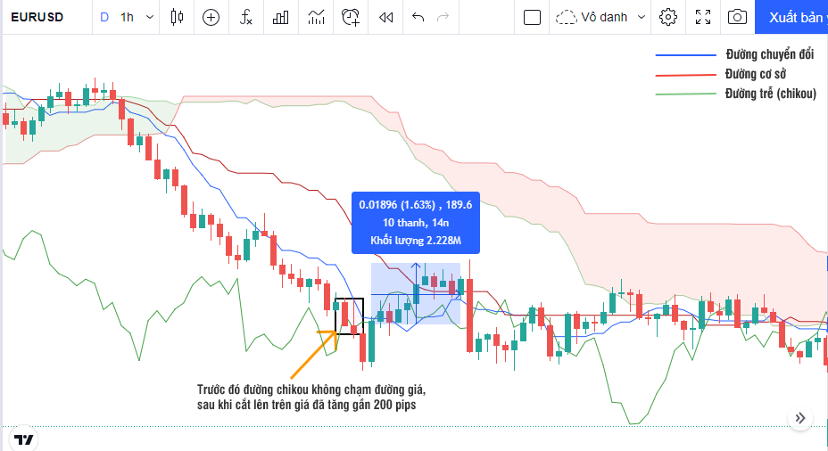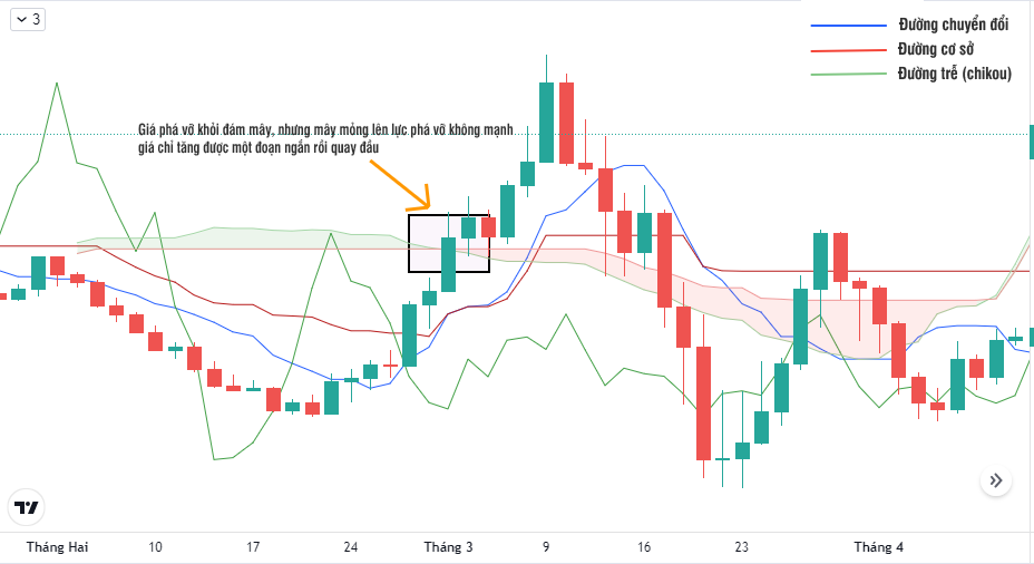 - Nếu giá đang nằm dưới đường Kumo, đó là một tín hiệu mua yếu, thậm chí có thể là tín hiệu giả.
