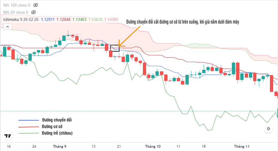 - Nếu giá đang nằm dưới đám mây, là tín hiệu bán đáng tin cậy