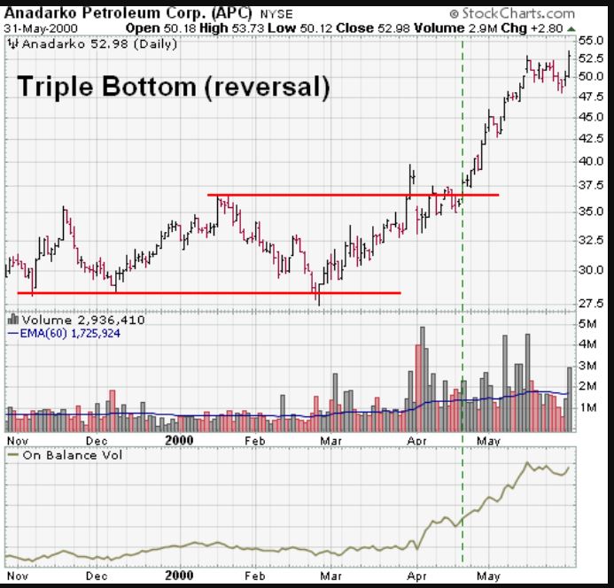 Theo đó, chúng ta cũng thấy sự phục hồi lên tới 36.5 đô la và một số đường zigzag với khối lượng thấp hơn nhưng giá sau đó giảm xuống còn 27 đô la, tạo ra đáy thứ ba ở cùng mức trong mô hình của mình. Giá cổ phiếu APC sau đó tăng mạnh, trong một bước nhảy gần như thẳng đứng với khối lượng giao dịch cao hơn.